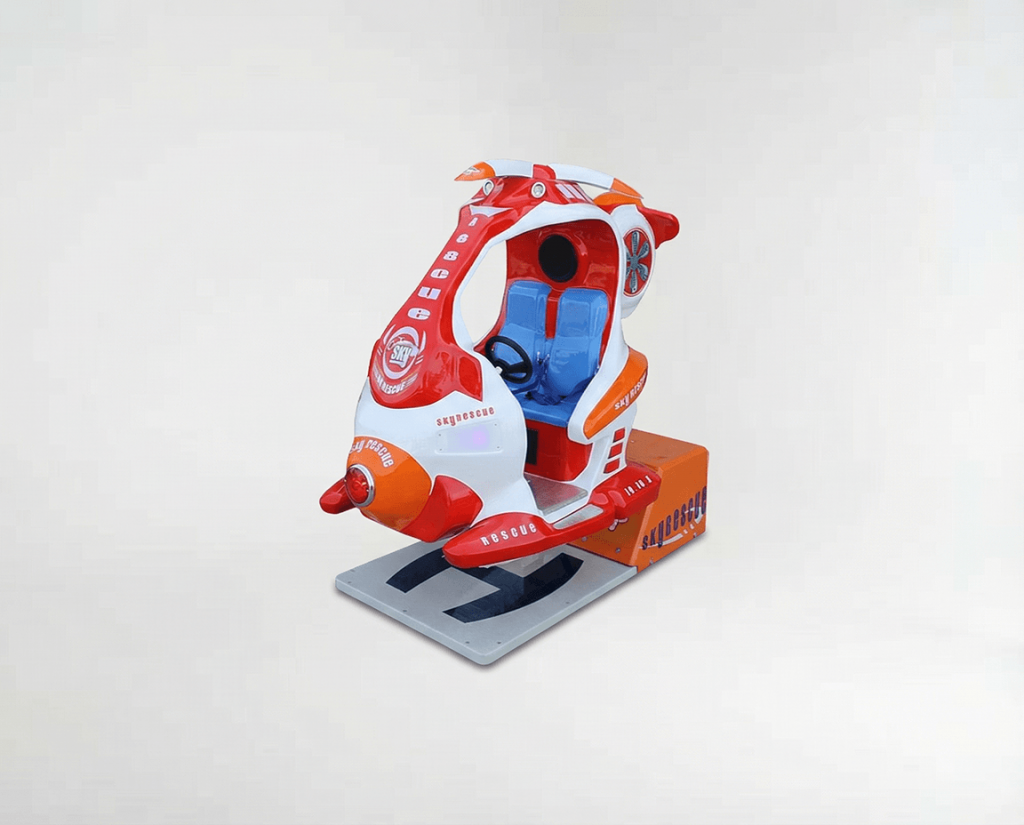 Prepare for a thrilling experience as children take on the role of brave helicopter pilots. The Sky Rescue Kiddie Ride features a captivating design that resembles a rescue helicopter, complete with vibrant colours and realistic details. This immersive ride allows young adventurers to engage in exciting rescue missions and save the day.